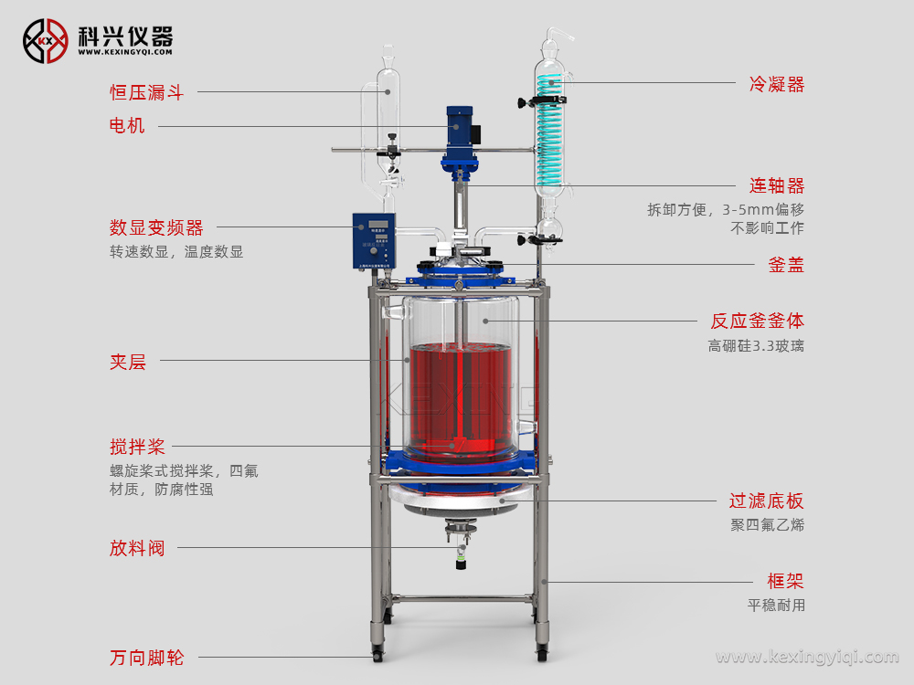 主要用于制藥、化工、實(shí)驗(yàn)室等機(jī)構(gòu)的有機(jī)合成實(shí)驗(yàn)室用中式設(shè)備,用于有機(jī)物合成實(shí)驗(yàn)中,是生化制藥中的主要設(shè)備之一。釜體為雙層玻璃燒結(jié)而成,雙層之間可通過冷卻液和加熱液。釜底過濾篩板的設(shè)計(jì),讓設(shè)備能承受100KG反應(yīng)液的壓力。過濾裝置采用法蘭和四氟材料制成與釜體相連,過濾器為玻璃砂芯,方便拆卸清洗更換。