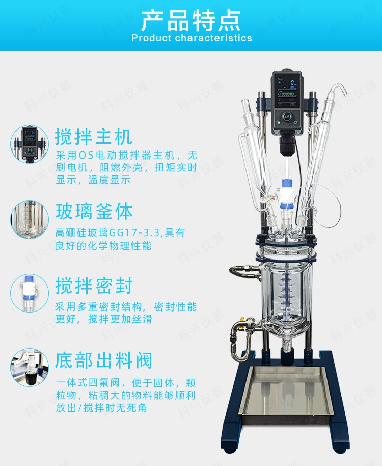 雙層玻璃反應(yīng)釜為雙層玻璃設(shè)計(jì),內(nèi)層放入反應(yīng)溶媒可做攪拌反應(yīng),夾層可通上不同的冷熱源(冷凍液,熱水或熱油)做高溫反應(yīng)(配置相應(yīng)的循環(huán)油浴鍋,溫度可以達(dá)到300℃)或低溫反應(yīng)(配置相應(yīng)的低溫冷凍液循環(huán)系統(tǒng),溫度可以達(dá)到-80℃),也可選擇加熱制冷一體循環(huán)機(jī);在設(shè)定恒溫條件下,在密閉的玻璃反應(yīng)器內(nèi),可根據(jù)使用要求在常壓或負(fù)壓條件下進(jìn)行攪拌反應(yīng),并能做反應(yīng)溶液的回流與蒸餾,使用中可以抽成真空,從而做真空反應(yīng)。是現(xiàn)代精細(xì)化工、生物制藥和新材料合成的理想中試、生產(chǎn)設(shè)備。它的這種設(shè)計(jì)使試驗(yàn)更加的安全,更加的方便。