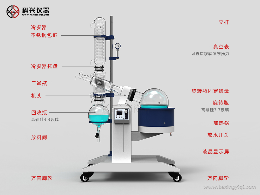 旋轉(zhuǎn)蒸發(fā)儀主要用于醫(yī)藥、化工和生物制藥等行業(yè)的食品等領(lǐng)域的中試,進(jìn)行濃縮、結(jié)晶、干燥、分離及溶媒回收。有大容量、大口徑旋轉(zhuǎn)蒸發(fā)瓶,置于水浴中,邊旋轉(zhuǎn)邊加熱,使溶液高效擴(kuò)散蒸發(fā)。產(chǎn)品可與循環(huán)水式多用真空泵、隔膜真空泵、低溫循環(huán)(真空)泵,循環(huán)冷卻器,恒溫循環(huán)器,低溫冷卻液循環(huán)泵等配套組成系統(tǒng)裝置。其原理為在真空條件下,恒溫加熱,使旋轉(zhuǎn)瓶恒速旋轉(zhuǎn),物料在瓶壁形成大面積薄膜,高效蒸發(fā)。溶媒蒸氣經(jīng)高效玻璃冷凝器冷卻,回收于收集瓶中,大大提高蒸發(fā)效率。特別適用對(duì)高溫容易分解變性的生物制品的濃縮提純。