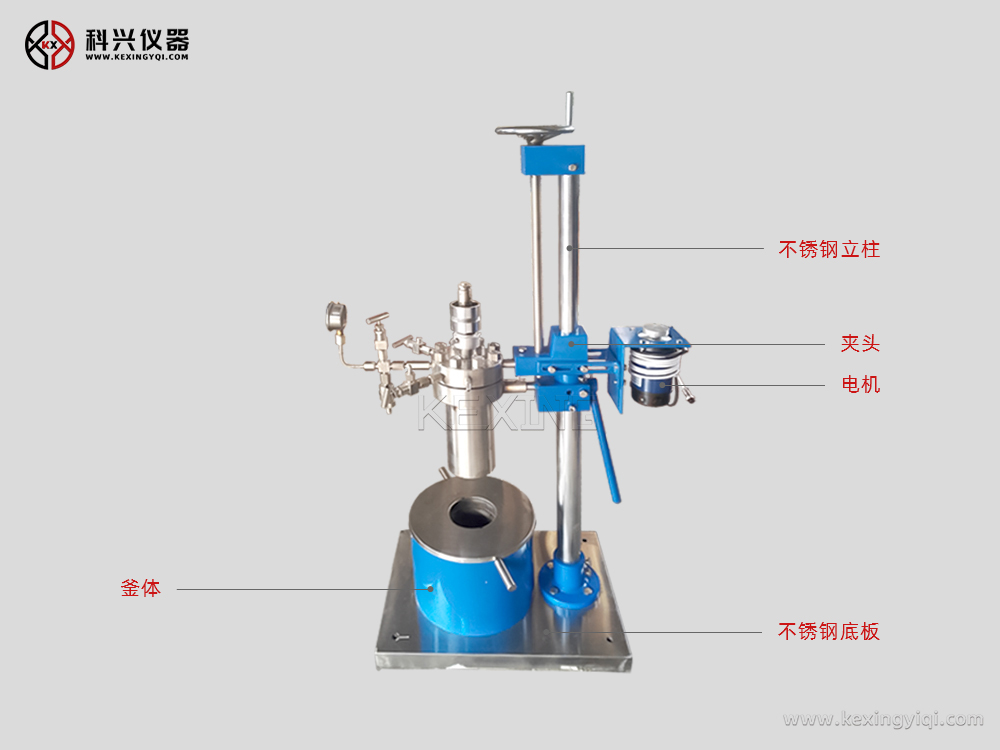 KSF系列高壓反應(yīng)釜為釜蓋可升降,分為KSF-S手動升降和KSF-D電動升降兩種。主要由釜體、釜蓋、磁力攪拌器、加熱器、閥門、加料口、內(nèi)冷卻盤管、安全爆破裝置、壓力表、控制儀及升降裝置等
