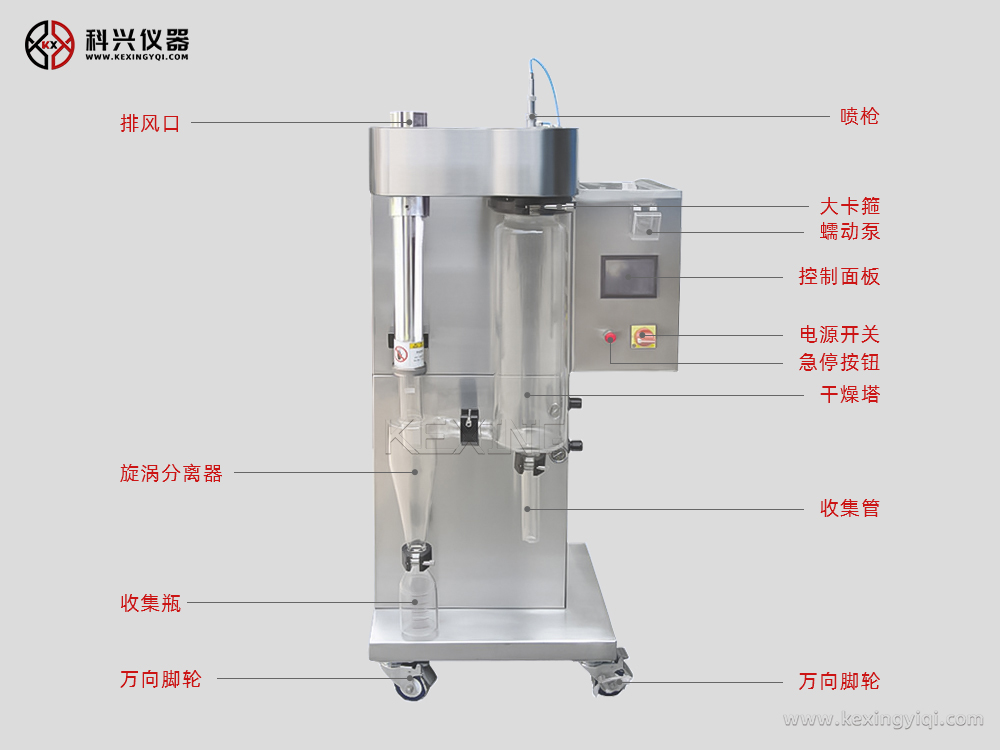 小型噴霧干燥機(jī)主要適用于高校、研究所和食品醫(yī)藥化工企業(yè)實(shí)驗(yàn)室生產(chǎn)微量顆粒粉末,對(duì)所有溶液如乳濁液、懸浮液具有廣譜適用性